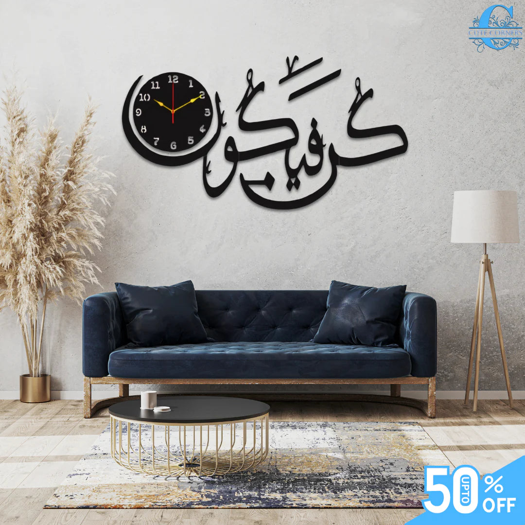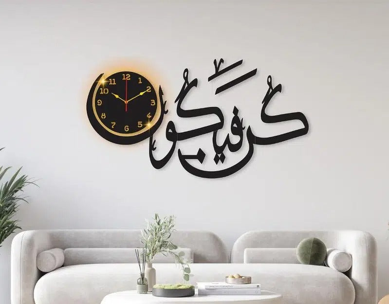 The Kun Faya Kun Islamic Wall Clock is not just a timekeeper; it’s a daily reminder of faith and spirituality. Its design encapsulates the powerful Quranic phrase “Kun Faya Kun,” which signifies the divine command of creation.