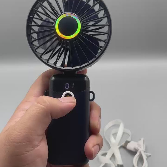1x Mini Portable Handheld Fan Foldable Neck Hanging USB Rechargeable Fan with Display Screen